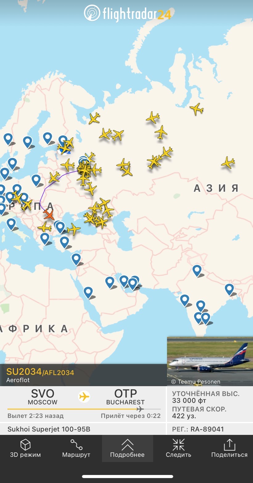 Летает 157 бортов. На картинке только SSJ  в один момент времени, и это больше чем над многими другими странами всего самолетов.
