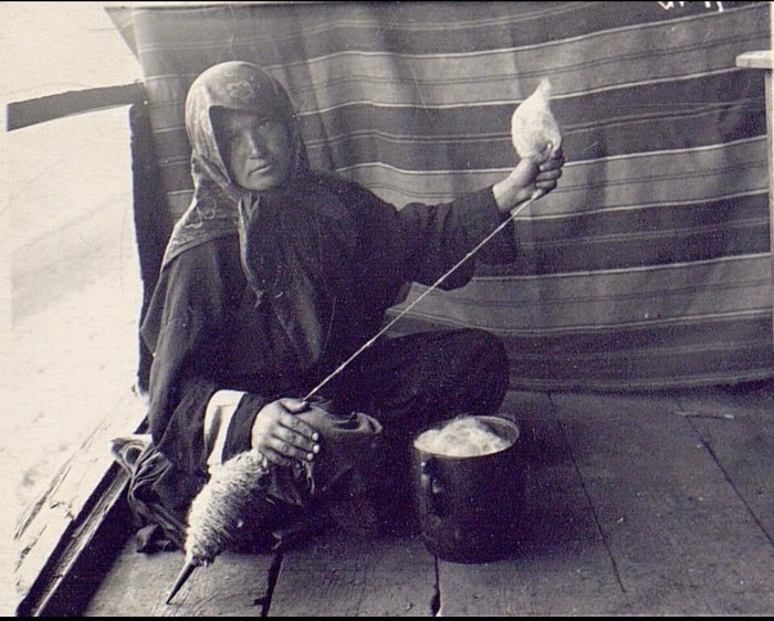 6. Женщина за прядением шерсти. Цезы, Цунтинский район, 1926 год. В СССР цезов записали как аварцев, хотя сами они идентифицируют себя отдельным народом.