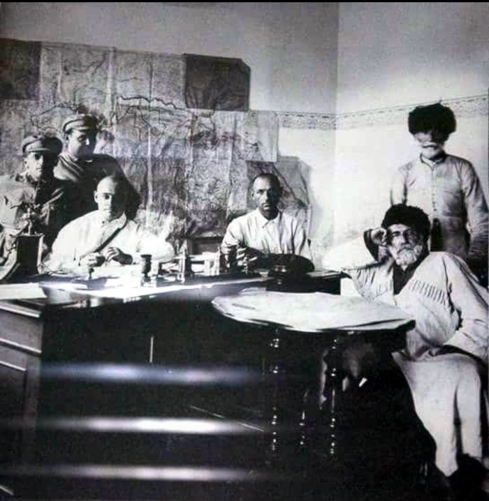 9. Арестованный после антибольшевистского восстания шейх Нажмуддин Гоцинский на допросе в НКВД. 1925 год.