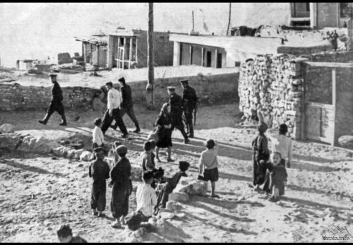 5. Человека, арестованного НКВД, выводят из села под сопровождением пяти сотрудников . К сожалению, не нашла названия села, есть только имя арестованного, краткая характеристика и причина ареста, со слов старейшины села: Мисирбег Идрисов, выпускник одного из ленинградских вузов, преподавал в селе физику и математику. Парня угораздило влюбиться в русскую учительницу, на которую положил глаз глава местного НКВД, и тот нашел способ разделаться с соперником. Дальнейшая судьба парня неизвестна.