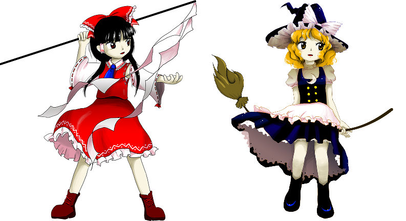 Слева - Рейму Хакурей, справа - Мариса Кирисамэ (рисунки из 15-й части).