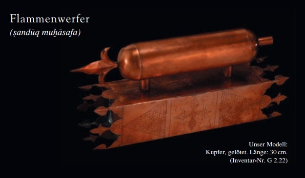 Сифоны, как принято считать, изготовлялись из бронзы, а вот как именно они метали горючий состав – неизвестно. Но легко догадаться, что дальнобойность "греческого огня" была более чем умеренной – максимум 25 м.