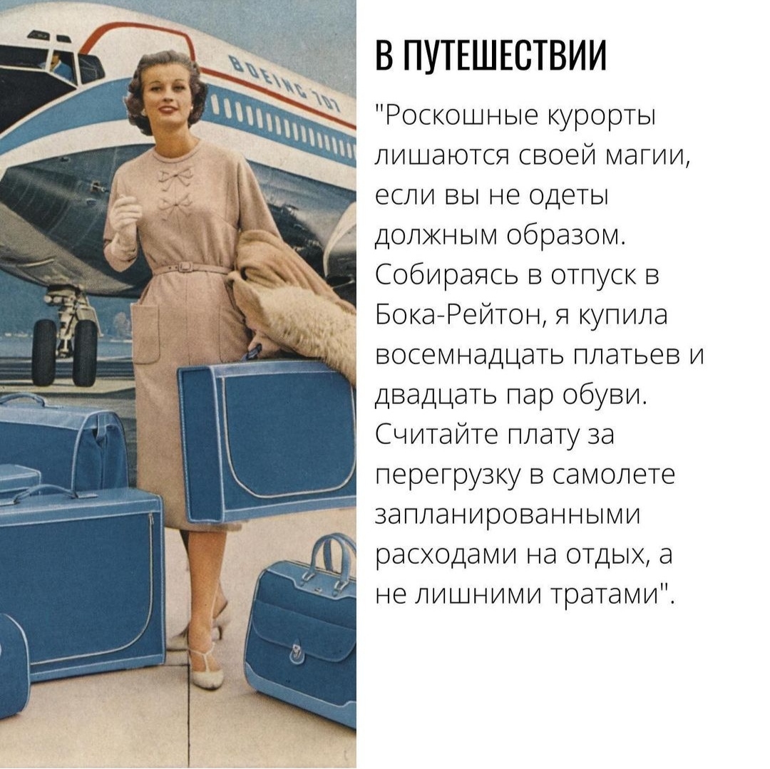 Вот, к примеру, отрывки из очень популярной тогда книги Энн Фогарти «Правильно одетая жена» (“The Art of Being A Well Dressed Wife”). Энн была популярным в пятидесятых дизайнером с Пятой авеню и не только одевала своих покупательниц в корсетные платья с пышными юбками, но и щедро делилась знаниями о том, как «правильно» и элегантно жить.