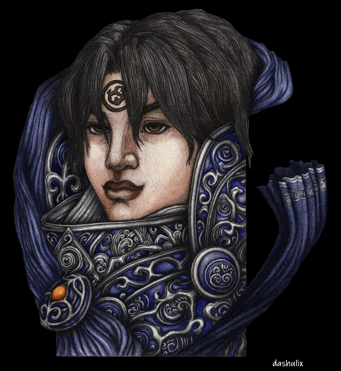 Утер мне всегда не нравился тем фактом, что он всю сагу ходит в лохмотьях в которых его нашли в горах. Даже на коронации. Ясное дело, что у разработчиков были дела поважнее чем делать ему два портрета и две модели. Поэтому такая вот игровая условность. Я захотел исправить это, как получится. Поэтому взял его портрет из брифингов, затем я сделал ему синий доспех на подобие его цвета в демонической форме, как в свое время рисовала Dashulix.