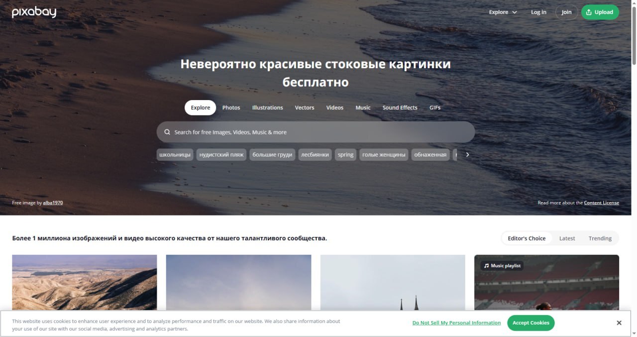 Всем известный сток pixabay, некоторое время назад запретил доступ на свой сайт пользователям из России. Но при это оставил поддомен /ru активным. Путем хитрых манипуляций удалось зайти на этот сток.