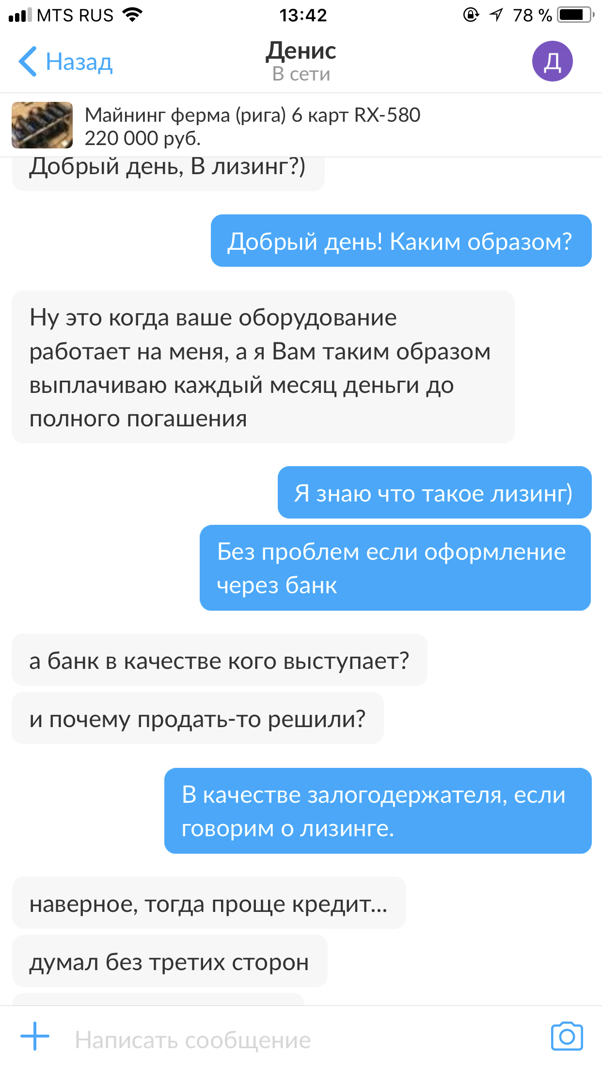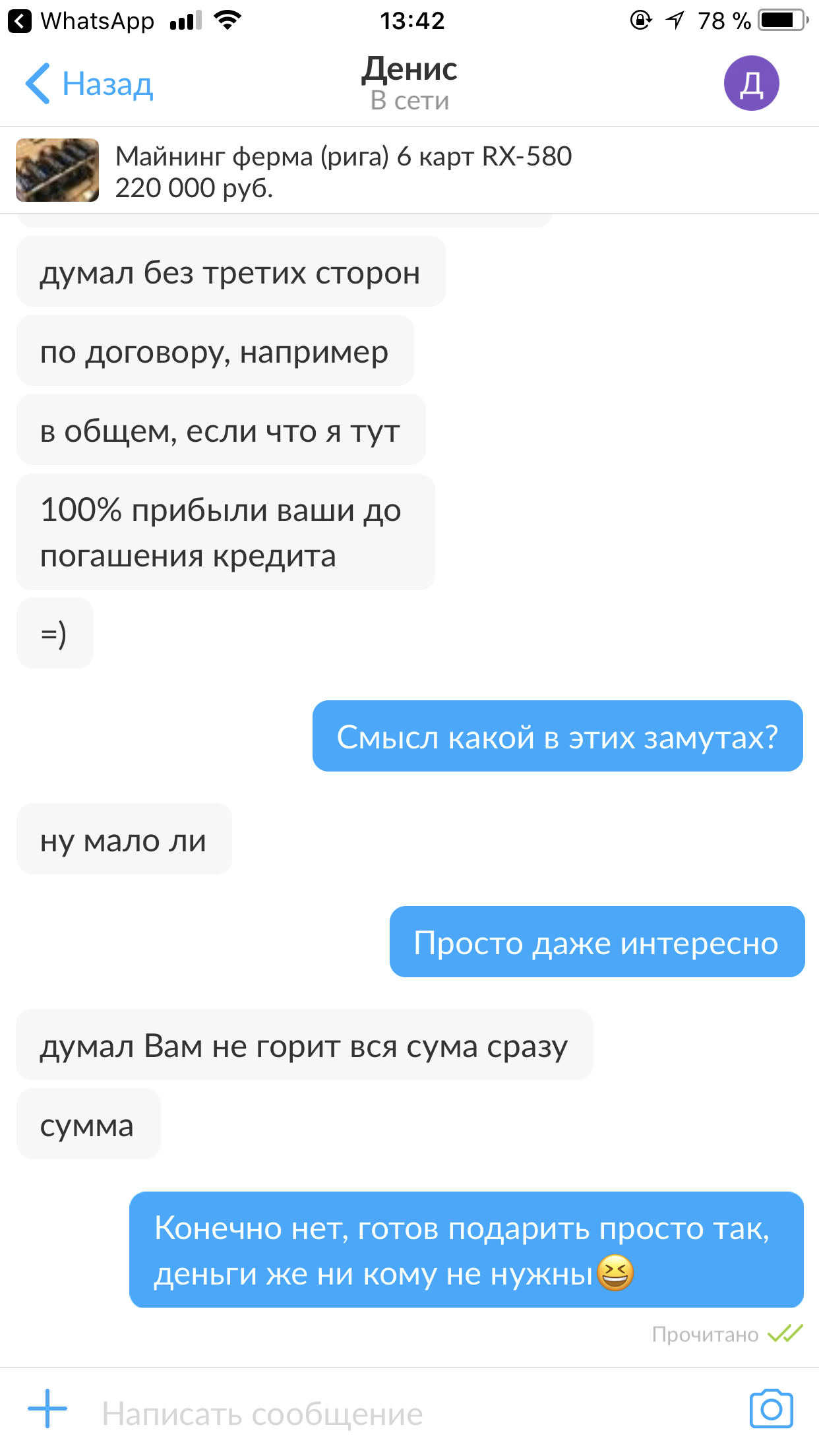 Вопросы с авито по поводу купли-продажи майнинг фермы
