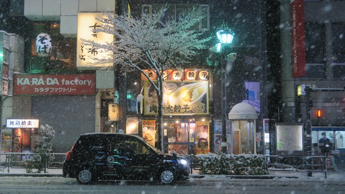 Токио в снегу. Свежий снег, который останется чисто белым до момента, пока он не растает.