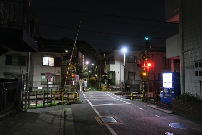 Самый обычный переход через железнодорожные пути. Иногда можно ждать минут по 10, пока проедут все составы) Но такое встречал только в Токио и ближе к центру.