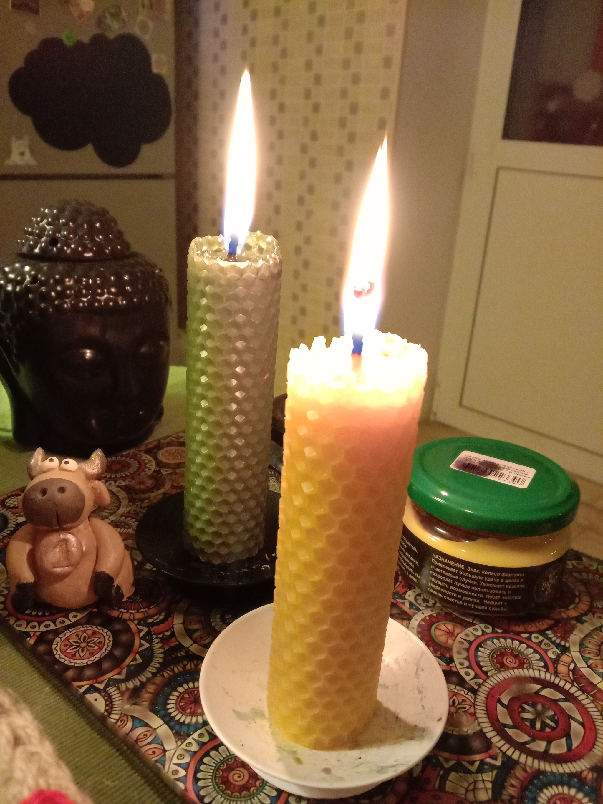 Я попробовала делать свечи из вощины, и из воска (соевый и кокосовый) - результаты на фото.
