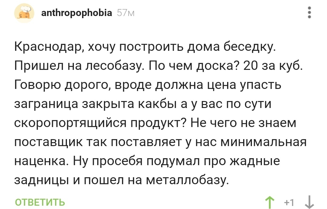 Так вот, вы купили сырье по 8500₽, но с учётом отходов (горбыль) оно вам обошлось в 9500₽, вы заплатили рамщикам, вы заплатили за электричество, рабочим (заточник, электрик, водитель погрузчика, фишкаристу, механику и тд), купили пилы, заплатили налоги и получили свой доход, у нас первый сорт с августа по февраль стоит 17000₽, посчитав можете понять, что далеко не миллионные прибыли, но в целом наша организация строила планы на увеличение мощностей и зарплаты у всех росли.