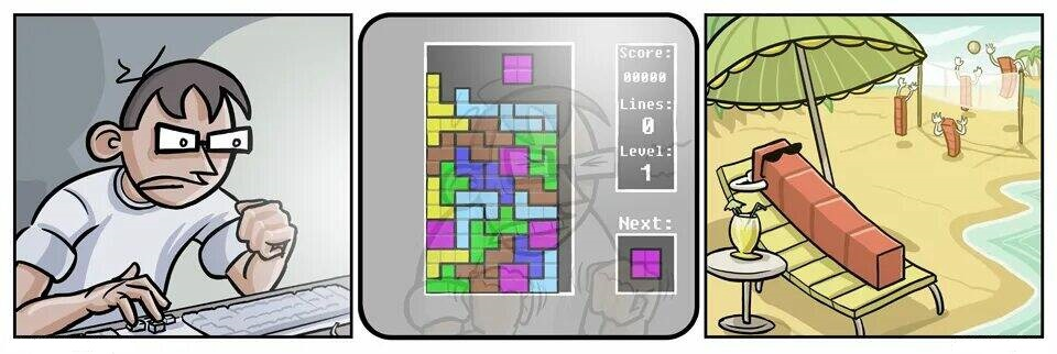 А ещё мне понравилось такая мысль, или даже, скорее, золотое правило, заложенное в те далекие времена — чем тупее и понятнее механика игры, тем выше шанс, что она завоюет рынок и разойдется, как горячие пирожки. Так оно с Тетрисом и вышло. Актуально до сих пор.