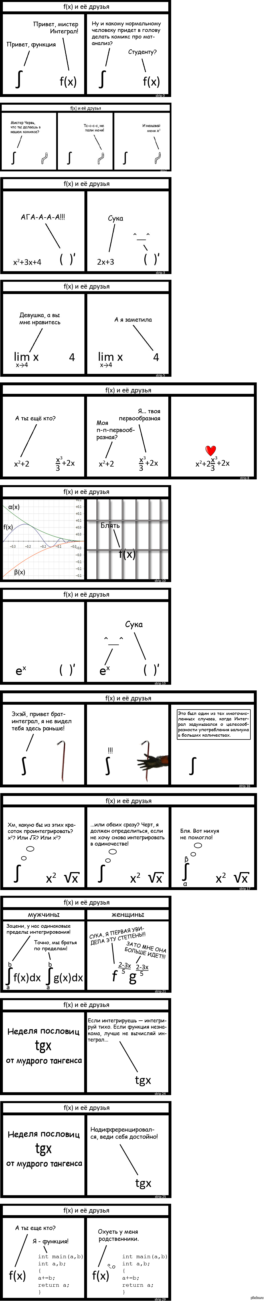 175 CrzTssr Немножко математического юмора 13 лет назад Комикс "f(x) и её друзья", ссылка на страницу автора внутри Интересное