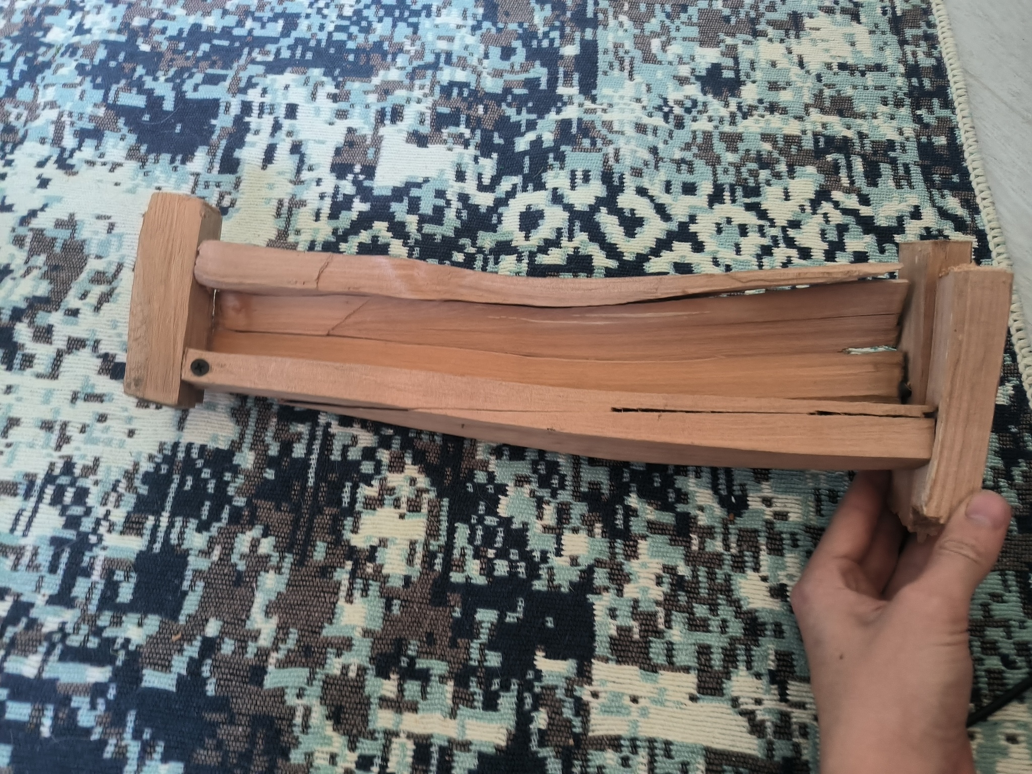 Подставка из ореха, как и в оригинальном изделии из журнала. Только орех не американский, а европейский, добытый при обрезке деревьев на местности. Пришлось его немного тонировать морилкой, так как изначально он было очень светлый, еще не успел набрать цвет из-за небольшой толщины ствола. В общем итоговый результат мне даже нравится. Может быть я когда ни будь еще отполирую лак, все таки покраска балончиком на позволяет добиться идеального результата.
