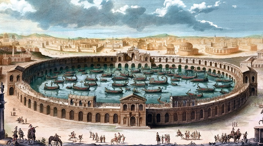 Гладиаторские бои прошли эволюцию от обряда жертвоприношения до структурированных шоу с чёткими правилами, которые можно условно поделить на 3 вида: бои гладиаторов между собой; бои гладиаторов с животными и навмахии - бои на кораблях, для чего либо арену заполняли водой, либо делали искусственное озеро. Это был самый дорогой вид гладиаторских боёв. Поговаривают, что Юлий Цезарь в 46 году до н.э. устроил навмахию при участии 30 кораблей и 3000 гладиаторов. Крупнейшая же навмахия была организована при императоре Клавдии - 50 кораблей и около 20 тысяч гладиаторов.