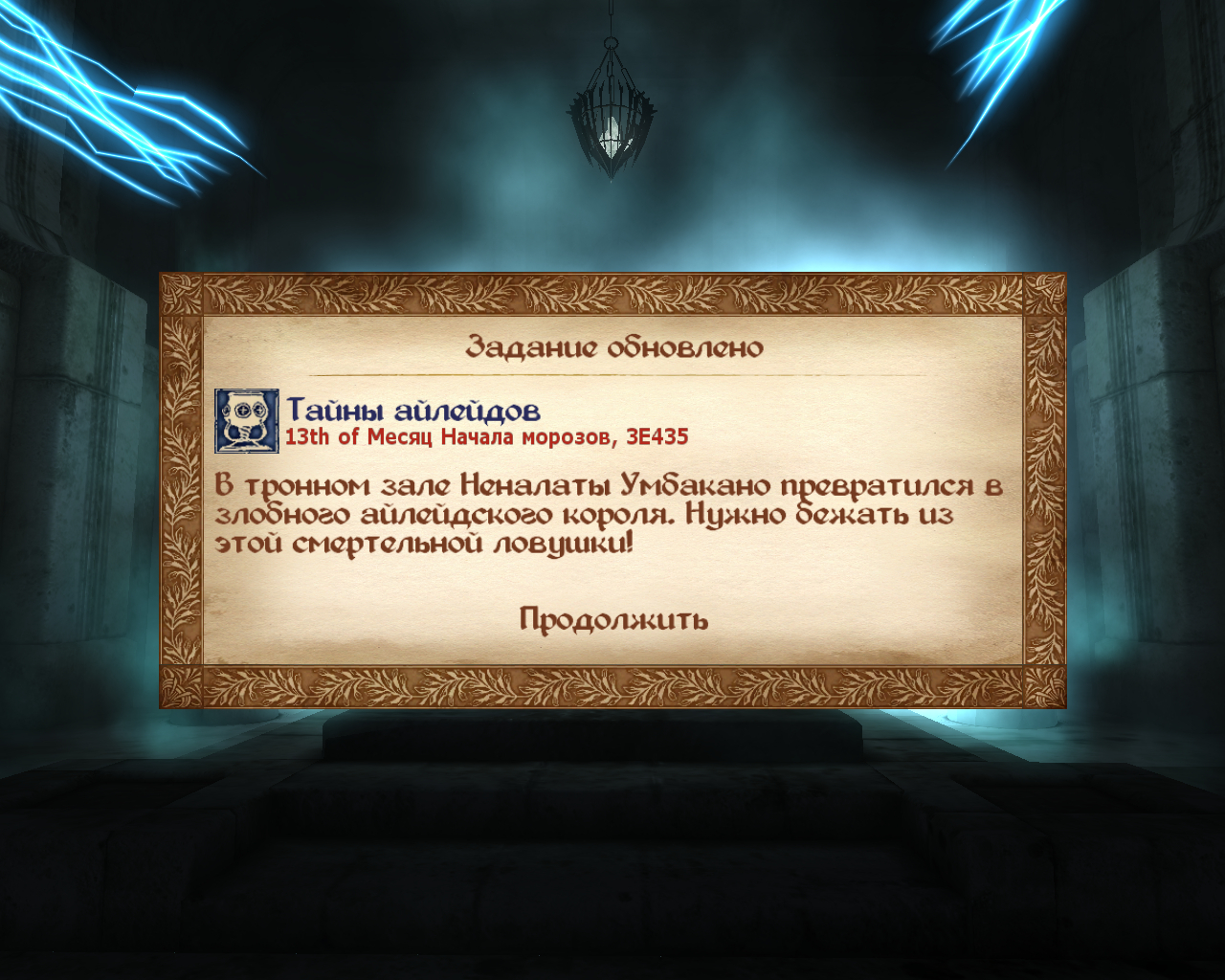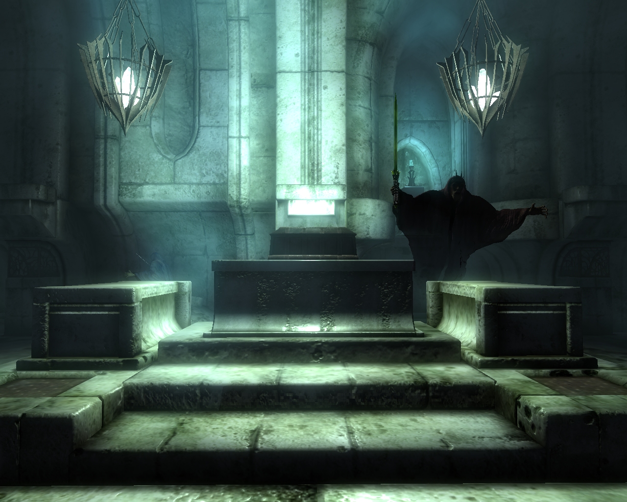Руины столицы последнего разрушенного города-государства айлейдов. Расположены в устье реки Серебрянки и заняты ныне нежитью. У входа нас уже поджидает Умбакано со своим наемником Мареком. В глубине развалин находится тронный зал Неналаты, куда мы и должны сопроводить нашего коллекционера, задумавшего, как выяснится чуть позже, ни много ни мало пробудить древних эльфов и стать их королем. В дороге альтмер с телохранителем будут осмотрительно держаться сзади, так что зачистка территории ляжет на наши плечи. Но в конце пути перед стеной, перекрывающей вход в тронный зал, альтмер выдвинется вперед и вставит в соответствующий паз резную панель из Малады. Проход откроется, Умбакано прошествует к трону, усядется и напялит на голову корону. Ударят молнии, трон окутается светящимся облаком, а из открывшихся тайных проходов в зал повалит нежить. На экране всплывет табличка с уведомлением о том, что Умбакано превратился в злобного айлейдского короля и пора срочно отсюда валить.