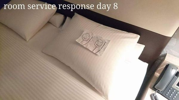 Автор этих снимков часто ездит в командировки, где живет в гостиницах. Его хобби - оставлять в номере перед своим уходом всякого рода фигуры из подручных средств для горничной. В большинстве случае горничные просто выполняли свою работу, но во время пребывания в одной из гостиниц Баку горничная стала оставлять свои ответы.