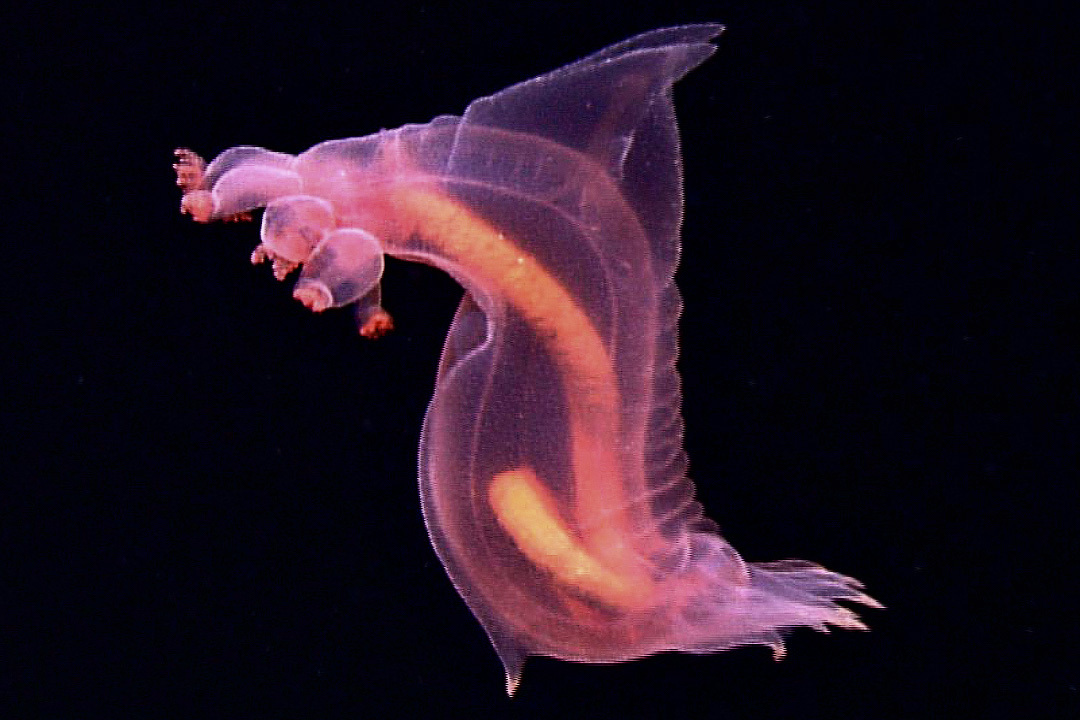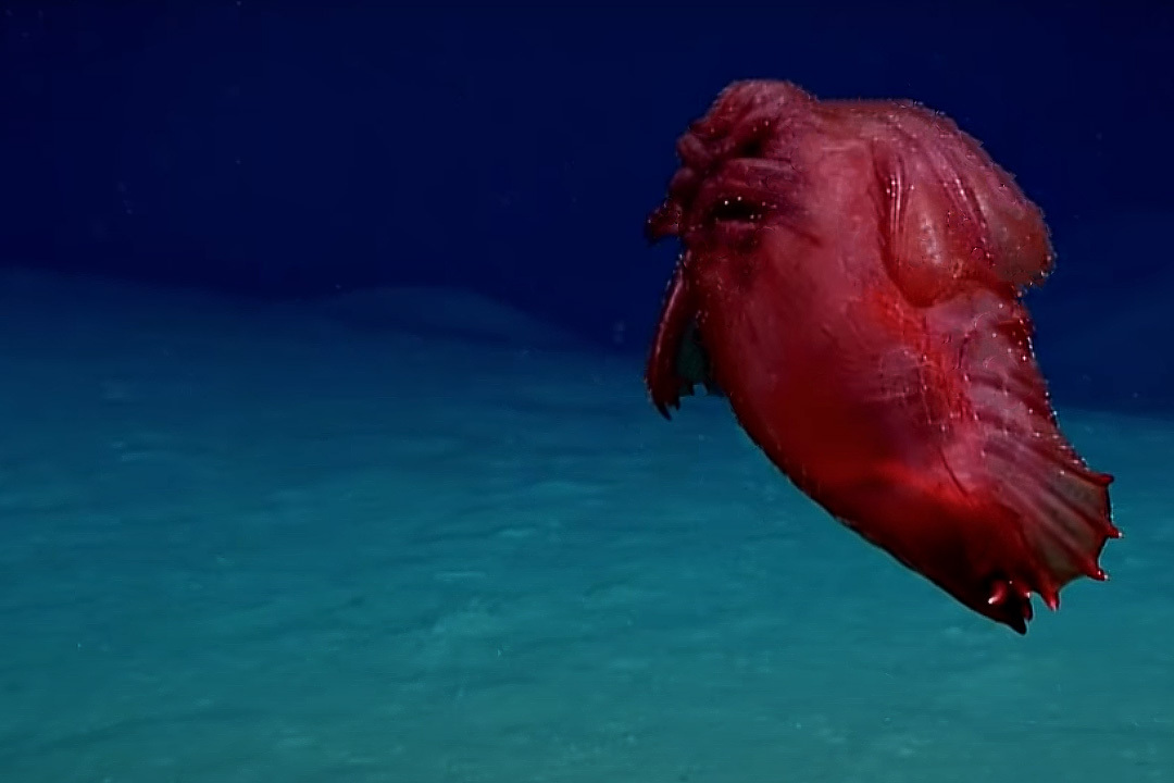 Науке же он известен как розовый морской огурец (Enypniastes eximia) и является ни чем иным как голотурией. Но в отличие от большинства голотурий, ползающих по дну, эта предпочитает плавать.