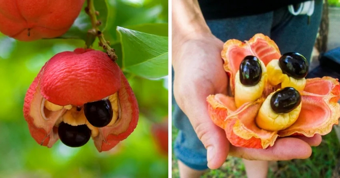 Аки или блигия вкусная. Где растёт: Ямайка, Бразилия, Колумбия, Эквадор, Австралия. Вкус: Есть фрукт в сыром виде категорически нельзя, так как он ядовит. Употребляют в пищу только специально обработанные плоды, которые по вкусу напоминают грецкий орех.