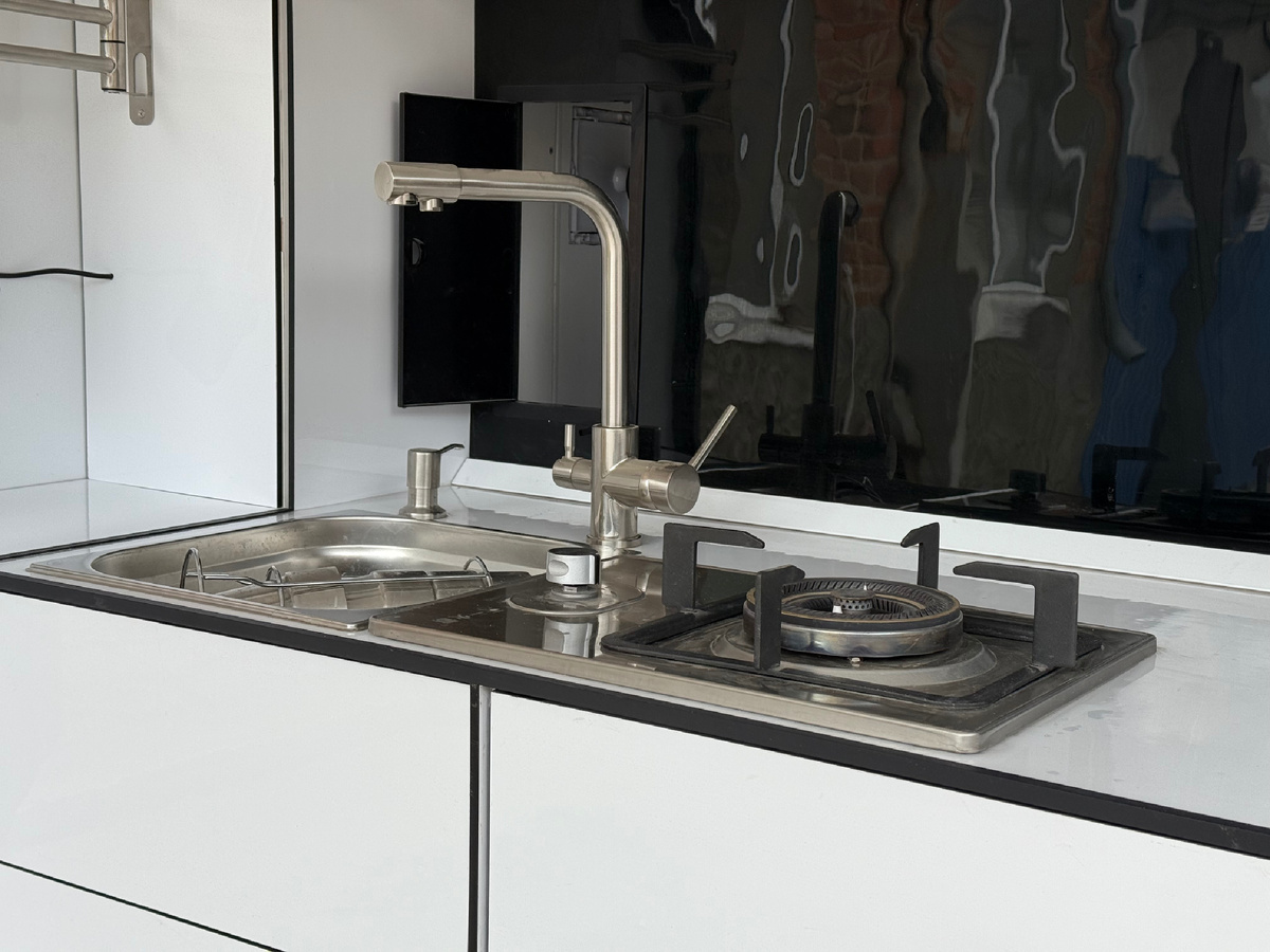 Это может быть небольшой квадроцикл, или мотоцикл. Если же в "гараже" ничего не стоит, то кухня сохраняет свой функционал, за исключением подачи горячей воды. Можно поставить кемпинговую мебель, стол и сидеть в прицепе на случай плохой погоды.