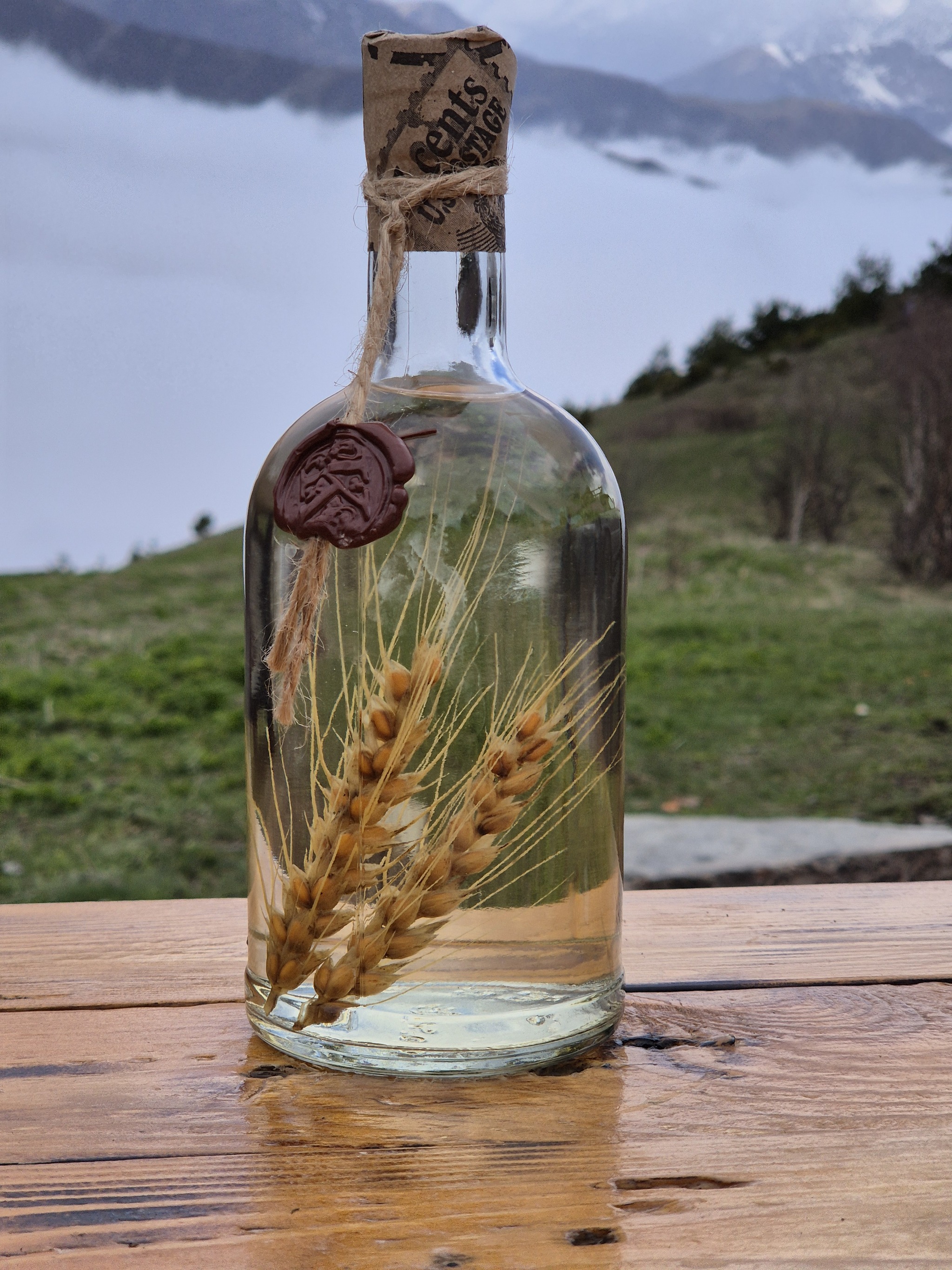 Красиво оформленная бутылочка самогона на нашем пикнике