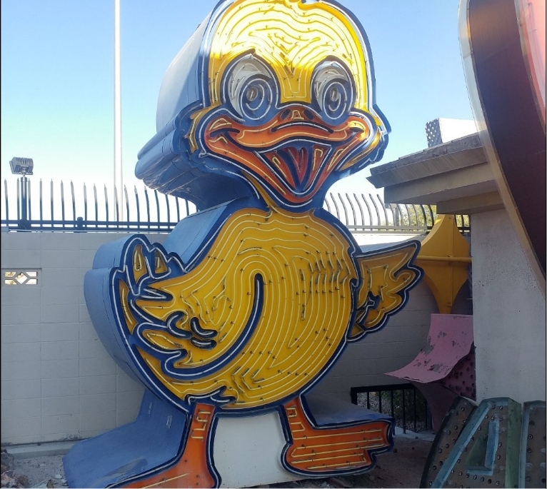 место демонтажа и уничтожения старых вывесок, компания YESCO начала хранить некоторые из своих самых запоминающихся произведений. Находясь на заднем дворе компании, эти культовые достопримечательности постепенно уничтожались, пока они не были спасены некоммерческой неправительственной организацией в 1996 году. Многие из них были восстановлены и теперь красуются в Неоновом музее, расположенном на бульваре Лас-Вегас, к северу от Бонанза-роуд, рядом с Cashman Field Center.