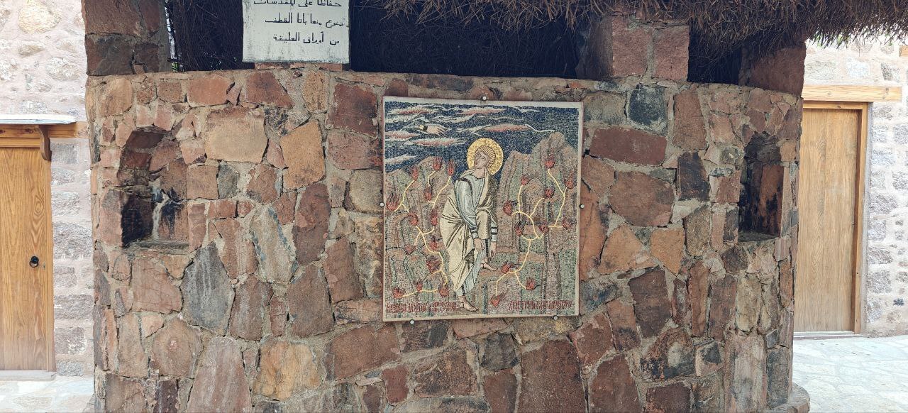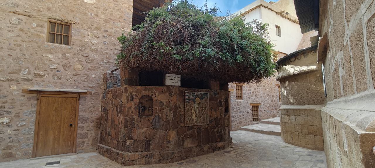 После, спустившись с горы, при посещении монастыря Святой Екатерины смог вблизи рассмотреть куст неопалимой купины (10 лет назад к нему было не подойти из-за стоявшей перед ним оградки). "Одной из святынь монастыря является растущий на его территории Куст Неопалимой Купины, в котором Моисею явился Бог. Около этого куста, в горном оазисе, по преданию христиане стали жить начиная с 1 века. Монастырь в его нынешнем виде был построен в 6 веке."