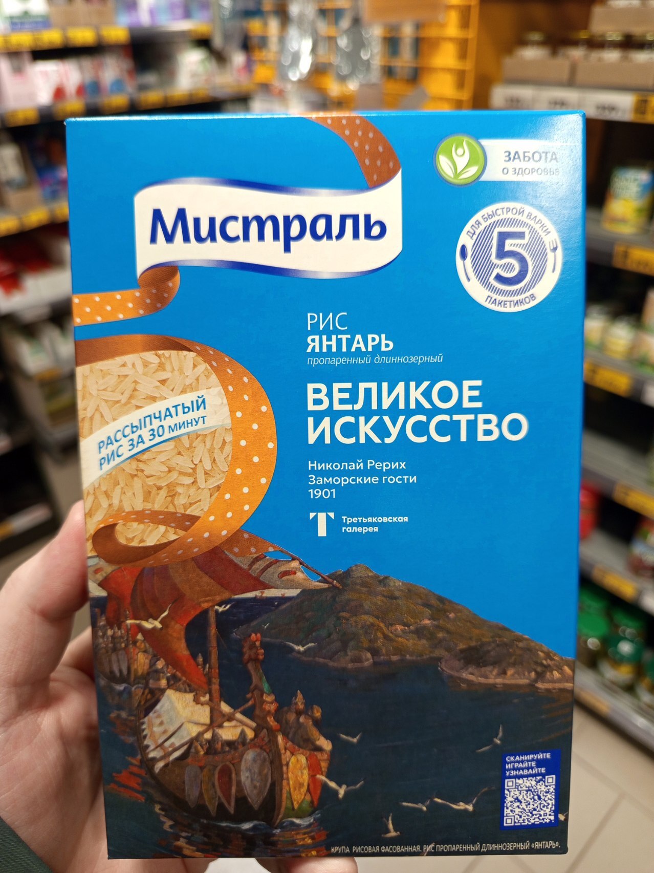 Иногда в супермаркетах бывают и такие находки. На самом деле хочется похвалить Третьяковку, что она не боится различных коллаборации. Обычно, конечно, это печать картин отечественных художников на футболках российских брендов, но и такой маркетинг тоже здорово. Как минимум на это хочется обратить внимание.