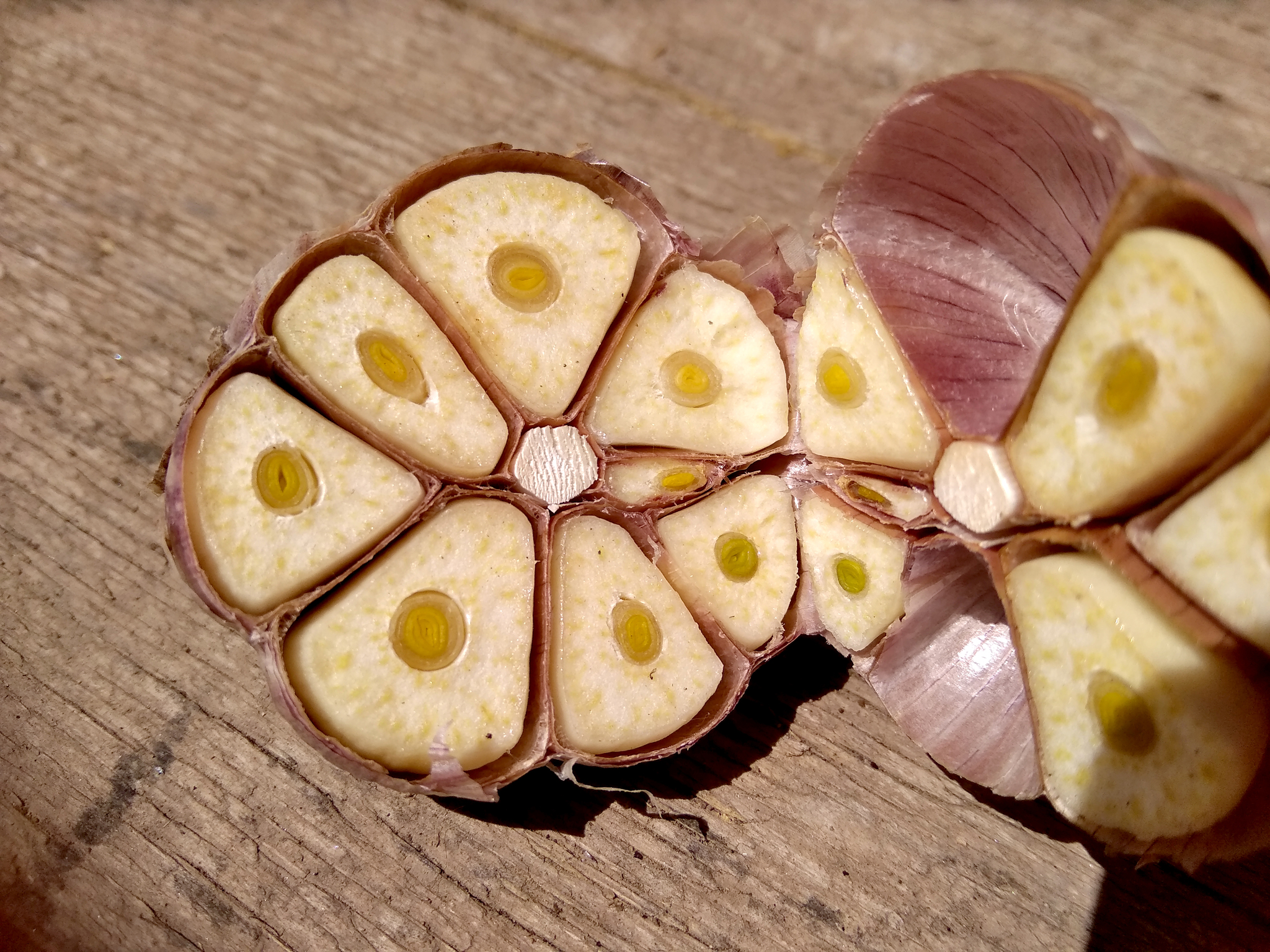 Гостила у родителей. Сидим чай пьем на летней кухне, болтаем. А взгляд все приковывается к какой то побрякушке яркой на полу. Думаю, что ж такое может быть, лежит на земле, рядом с овощами. Вроде игрушки пластмассовой. Не выдерживаю, спрашиваю у мамы - что это? Говорит - чеснок.Да не может быть! Беру в руки - точно, обычный чеснок.