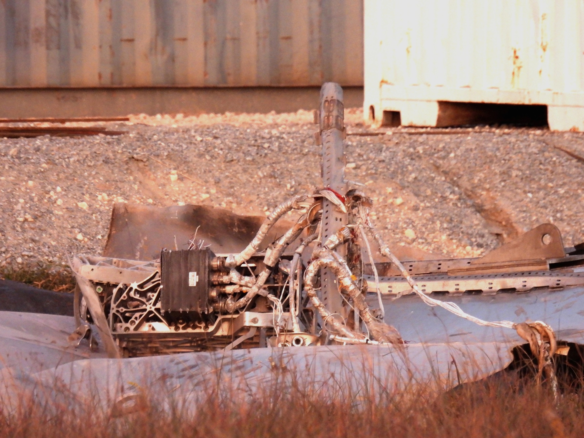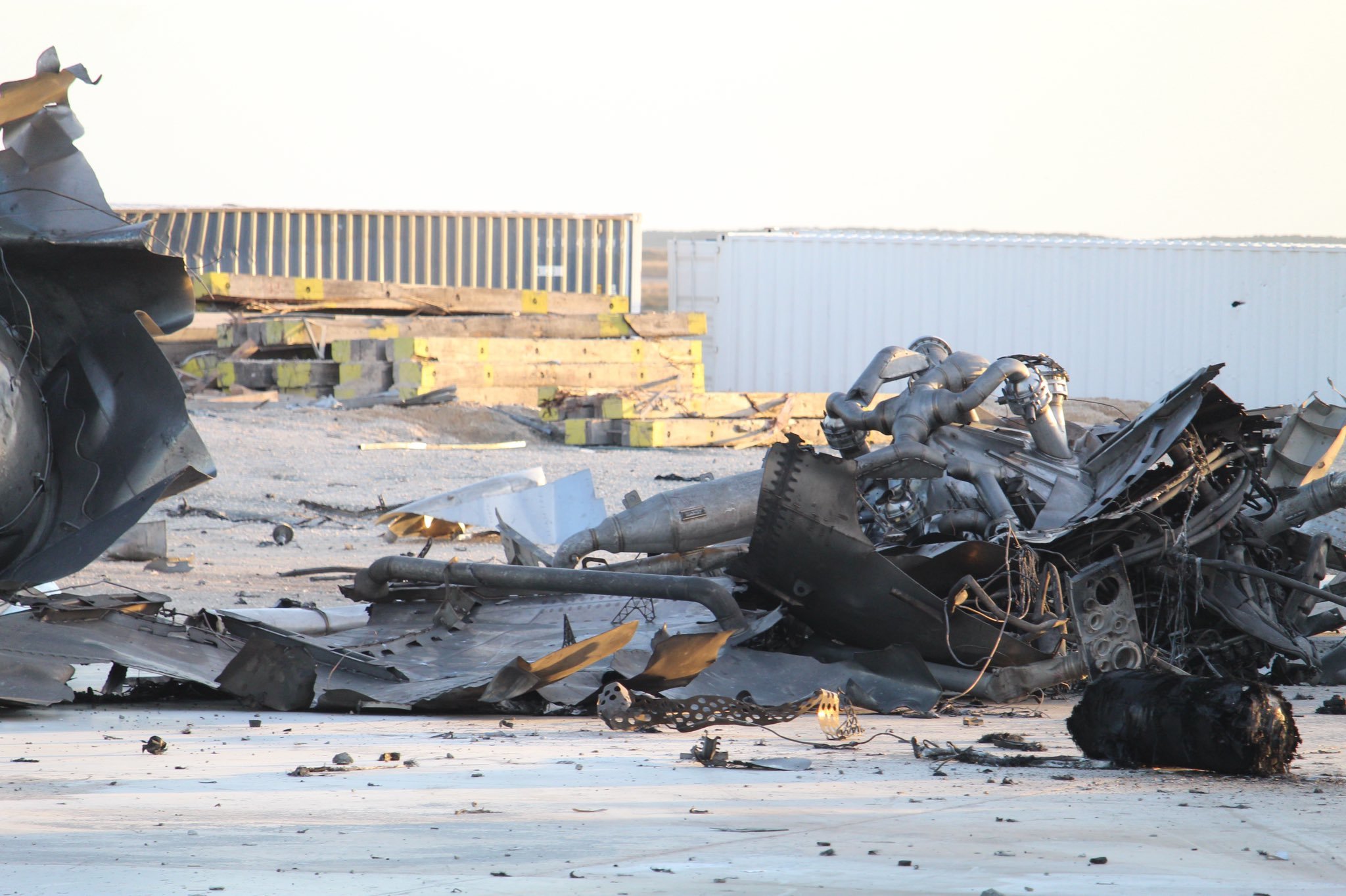 По сути от прототипа (будучи не совсем разрушенным) остался лишь конус носового обтекателя. Также можно опознать малый посадочный бак, часть двигательного отсека с упорной шайбой, бортовую авионику и опоры. Всё остальное представляет собой... будущий Cybertruck!