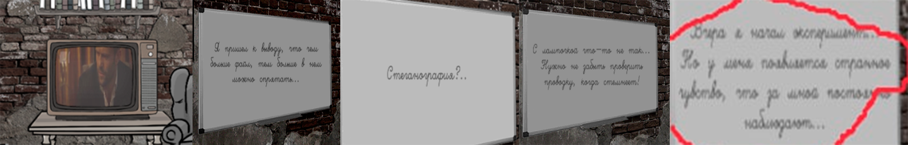 Спрятанное сообщение снова оказалось ссылкой, но на этот раз нас встретил детектив из превью видео. Пока что не понятно, что от него ждать, но, по крайней мере, у нас сформировалась какая-то картина происходящего. Нам дали доску расследования, на которой отмечены все пройденные нами этапы.
