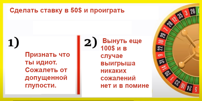 2) вынуть еще 100$ и вот еслиииии ты выиграешь, то никаких сожалений у тебя не будет.