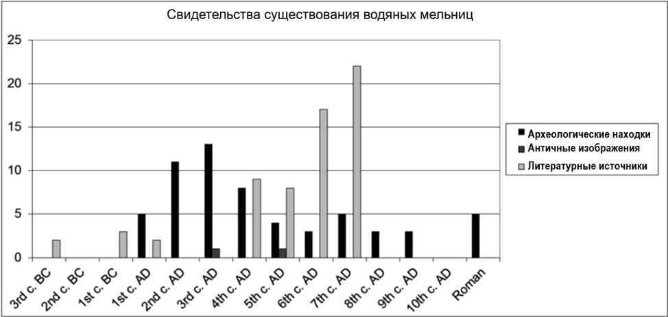 Но иногда бывают и обратные ситуации — как история с римскими водяными мельницами. Долгое время считалось, что в Риме эта технология хоть и была известна, но использовалась ограниченно (и я тоже так считал), тогда как в Средние века она начала внедряться повсеместно. Археологическая картина до конца 20 века соответствовала нарративной, пока не было обнаружено, что часть мельничных жерновов, которые ранее считались признаком мельниц с животным приводом, были, на самом деле, для водяных мельниц. И вышла забавная ситуация, что римские источники мало упоминали водяные мельницы, но их нашли уже довольно много, а вот в средневековье всё было наоборот — упоминаний много, а археологических свидетельств мало [30: 10.24-10.25; 32: 17-19].