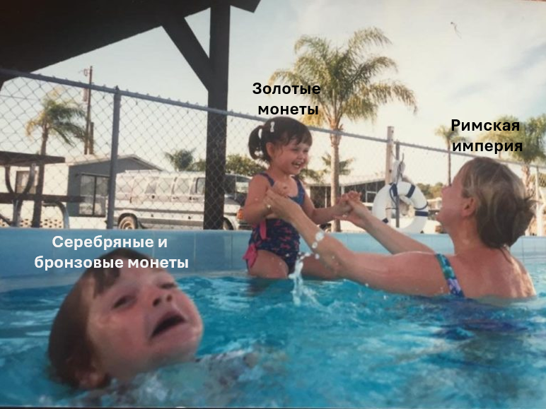 Начнём издалека. Основой римской монетарной системы со 2 века до н.э. была пара из бронзовых и серебряных монет разных номиналов. Сложилось так исторически: оба металла в достатке имелись в Средиземноморье и были ценны, так как активно использовались в ремесле. Бронза, как более дешевый металл, использовалась в основном для мелких покупок, тогда как серебро — для крупных. Золотые монеты чеканились, но использовались гораздо реже, серебряных и бронзовых.