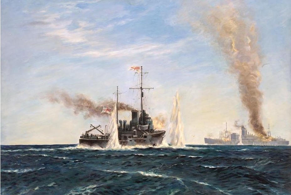 Тральщик (неофициально корвет) Bengal ведёт бой с вспомогательным крейсером Aikoku Maru. 11 ноября 1942 года
