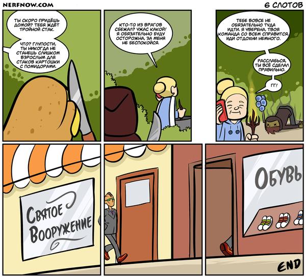 Два стрипа уже были выложены на пикабу, но по-моему из песни слов не выкинешь. И да, извините, но в какой-то момент мне надоело переводить звуки. И я решил не переводить названия айтемов, сорре.