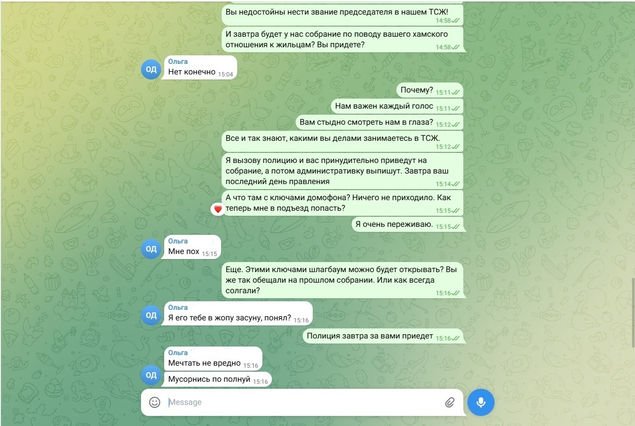 0 chelpara Нервные мошенники пошли 1 месяц назад Только что. Пишет в телеге индивид от имени председателя ТСЖ. Код от "ГИС ЖКХ" приходил два раза. Читайте, оценивайте. Индивид пока не выходит на связь. [моё] Картинка с текстом Скриншот Диалог Игровой юмор Длиннопост Ещё 0