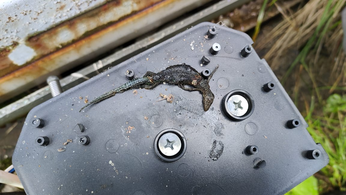 Ящер Петрович сныкав чекушку под трансформатором, убыл на работы. В перерыв он решил похмелится, и залез под трансформатор.