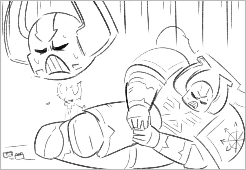 Берсеркер Кхорна, наступивший на лего.