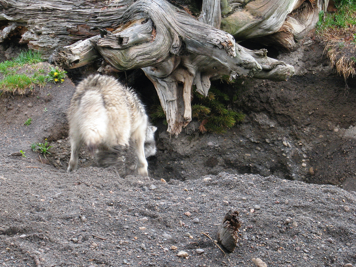 Траншея получается длиной около 3 м и заканчивается углублением. Обычно в корневище могучего дерева. Дверной проём обязательно подрывается. Это помогает волкам защитить «нижнюю чакру» от сквозняков и подтоплений.
