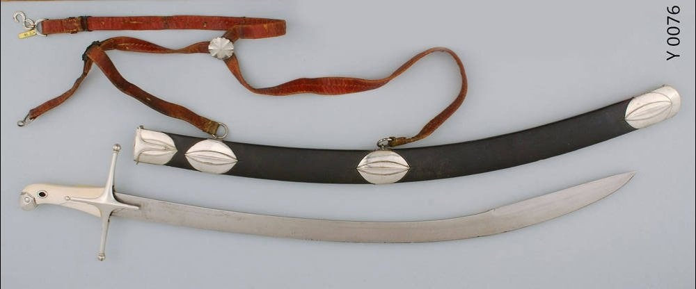 1) Красивая сабля с серебряной отделкой и рукоятью из слоновой кости, длина 92,9 см. Длина клинка: 78,7 см Вес: 966 гр. Каир, Египет, 16 век.
