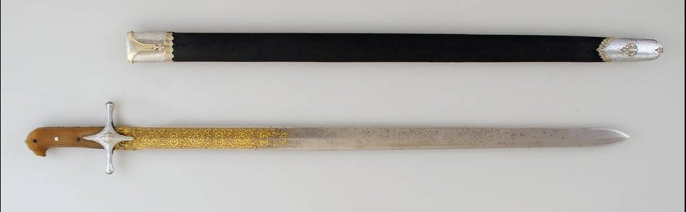 3) Позолоченный палаш с агатовой рукоятью, длина 88 см. Длина клинка: 75,6 см Вес: 757 гр. Османская империя, клинок 16 века, рукоять конца 17 века.