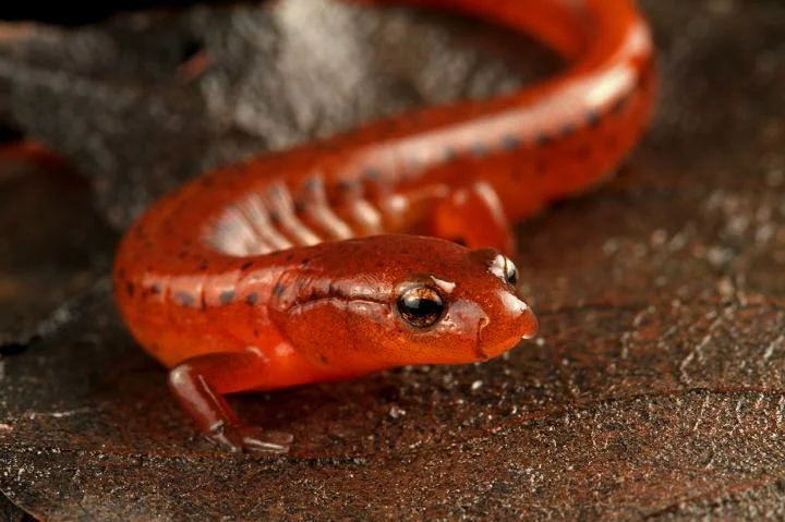 Каролинская песчаная саламандра (Eurycea arenicola) из штата Северная Каролина.