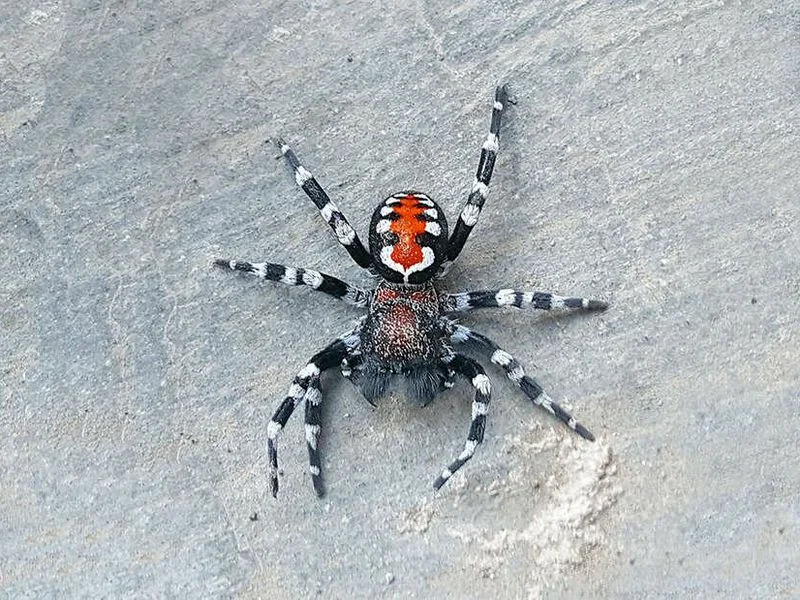 Красно-белая окраска паука Лоредия Феникс (Loureedia phoenixi) напомнила исследователям ухмылку Джокера.