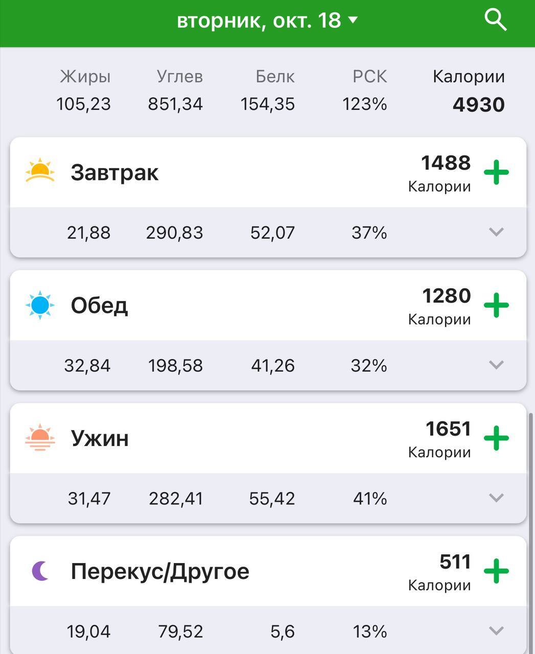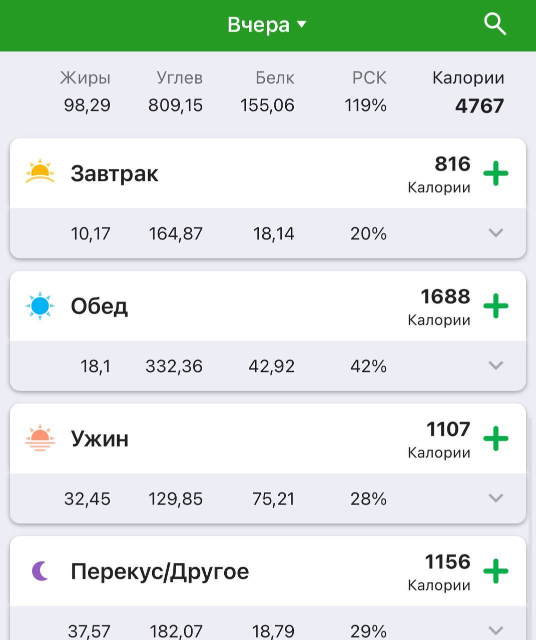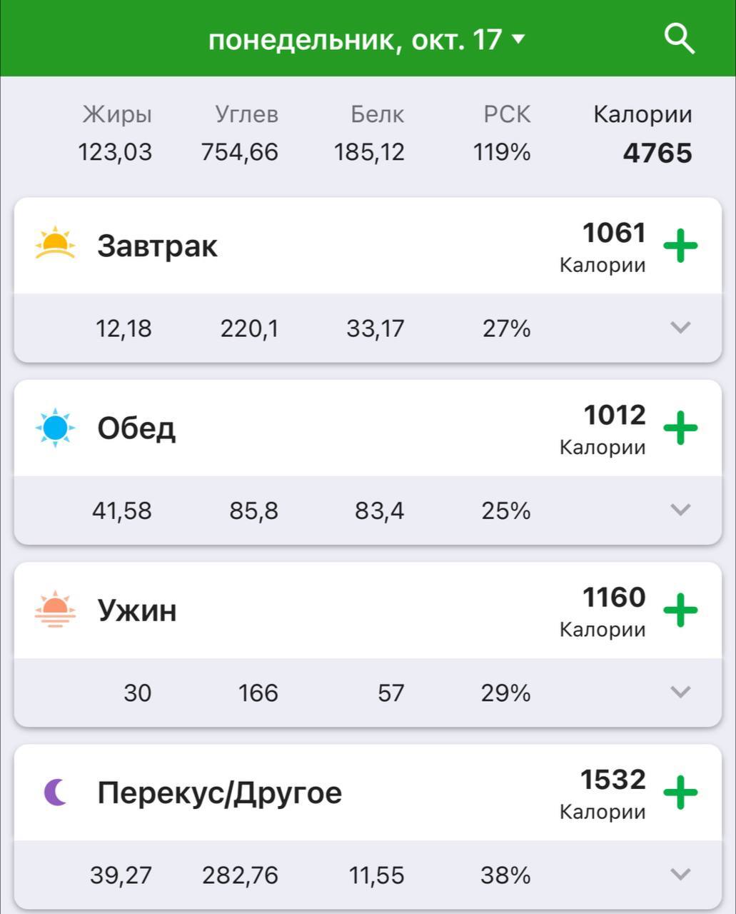 Зафиксировал последние 4 дня по калориям.