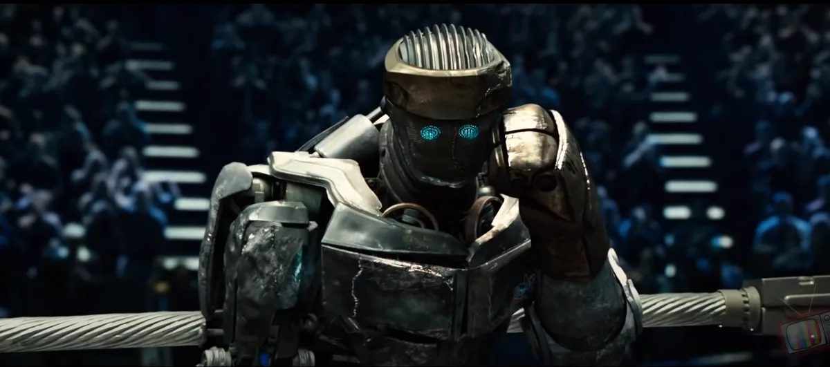 3) Развитие бокса. Вообще есть некая нелогичность в том, как в этом мире развивался бокс. Вот людей заменили на роботов. И тогда он должен или идти по пути развития идеи «тот же бокс, но без людей», и тогда функция «бой с тенью» должна была стать основной, и бокс должен был быть всё тем же привычным нам боксом, но где люди бьют друг другу рожи не напрямую, а опосредованно. Это и сохранило бы у дел спортсменов, и был бы важен не только робот, но и оператор, который должен был бы весь бой потеть вокруг сцены, и объяснило бы, почему роботы не имеют отличий от людей (одна голова, две ноги, две руки — а большинство роботов тут такие). Но этого не было.