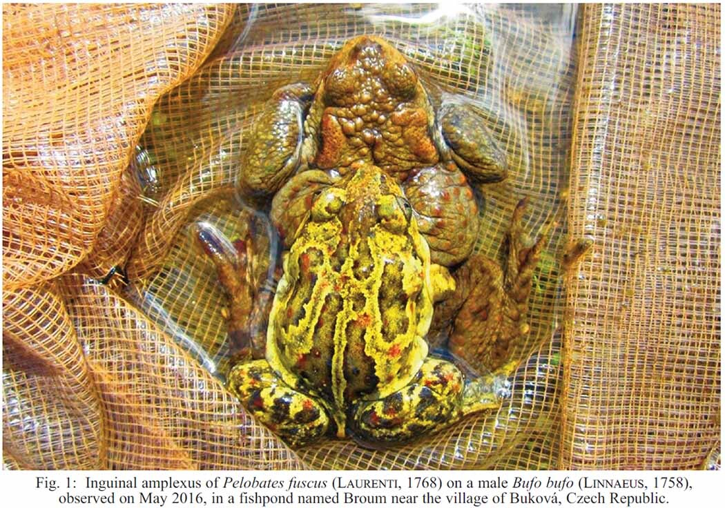 Еще одно интересное наблюдение было сделано в 2016 г. (Mačát & Jablonski, 2018). 9 мая, 2016 в 15:20, в пруду Broum, около деревни Buková, Czech republic был замечен амплексус самца обыкновенной чесночницы (Pelobetes fuscus) и самца серой жабы (Bufo bufo). Тут довольно интересная ситуация, так как у серой жабы амплексус подмышечный (axillary), а у чесночницы - паховый (inguinal) и из-за этого самец жабы не может правильно понять, что с ним делают, а самец чесночницы не понимает защитные сигналы самца жабы. К сожалению, что с ними случилось дальше в статье не говориться.