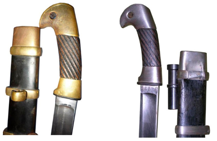 Отличительной особенностью кавалерийской шашки для красноармейцев и младших командиров от кавалерийской шашки для командного и начальствующего состава в наличии штыка на ножнах.