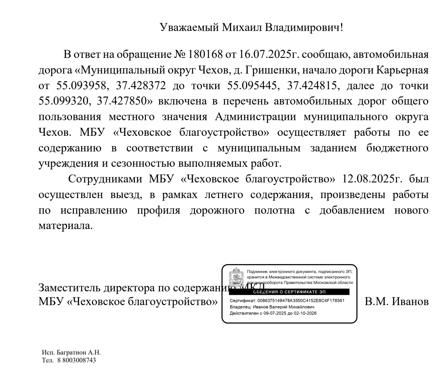 Решение: у местного губернатора , или как там его, есть телеграм. Пишу туда. Заодно нашёл сайт администрации Чеховского района, да, это около 100 км от Москвы. Пишу туда тоже.