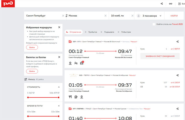 Сейчас зашёл на сайт РЖД - 42 поезда из Питера в Москву на 10 ноября.