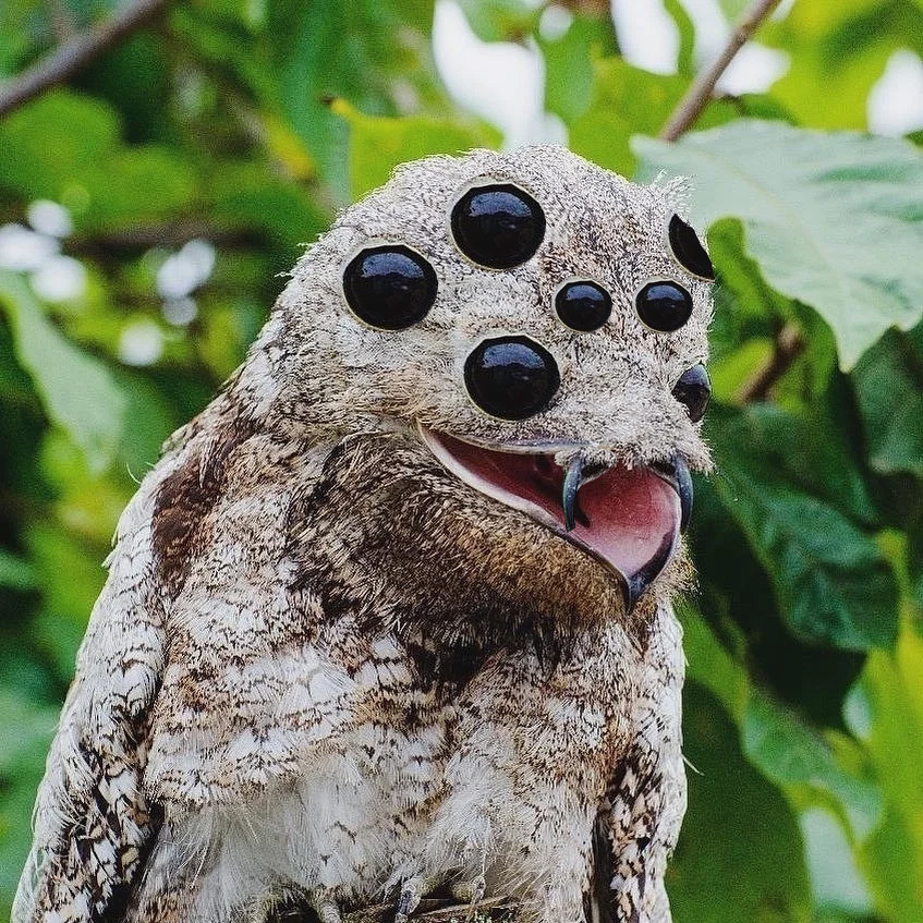 и кстати, когда эта птичка прячется она садиться на столбик/ветку вытягивается и закрывает клюв и глаза. Но все ещё видит, у нее вертикальные складки в веках через которые она смотрит